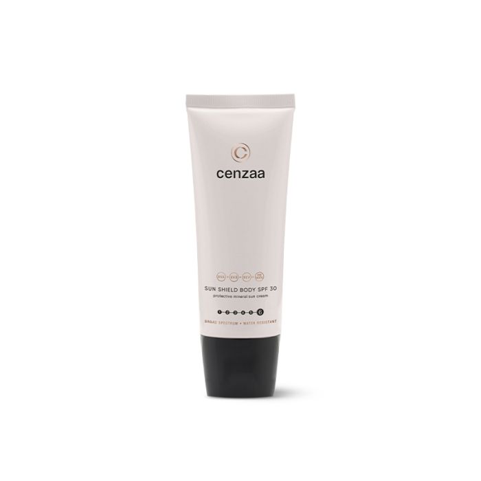 | Gebruik | CENZAA STAP 6 ADVANCED SUNCARE BEAUTYROUTINE Breng de SUN SHIELD BODY SPF 30 royaal aan voor eventuele blootstelling aan de zon. Regelmatig herhalen, vooral als u veel buiten bent, transpireert of gaat zwemmen. Let op: een hoge SPF biedt geen volledige bescherming tegen UV stralen. Verbranding door de zon beschadigt de huid permanent TIP! We geven je het advies om de tube te schudden voor gebruik, te bewaren op kamertemperatuur en uit direct zonlicht te houden. Het beste voor je huid? Vraag jouw Cenzaa Huidexpert naar de unieke huidanalyse en ontvang een persoonlijk zonadvies |