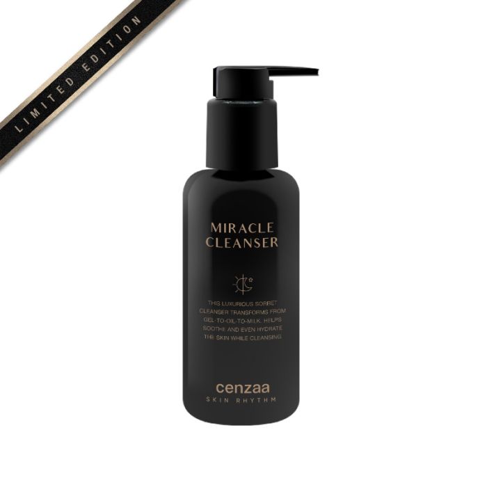 | Gebruik | CENZAA'S BEAUTY ROUTINE Miracle Cleanser is er voor iedere ochtend en iedere avond. Breng de Miracle Cleanser met droge handen aan op een voorverwarmde huid. Masseer de gel met roterende bewegingen over de huid zodat de gel warm wordt en transformeert in een olie. Maak vervolgens je handen licht vochtig |